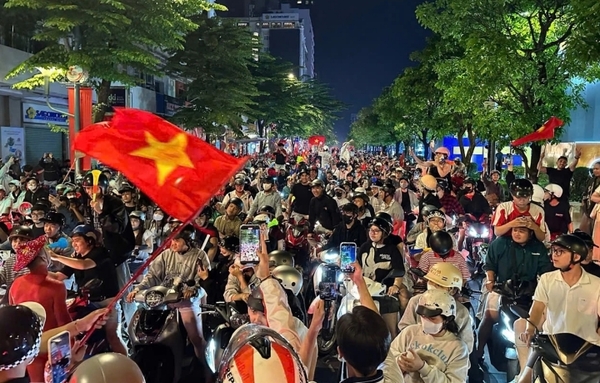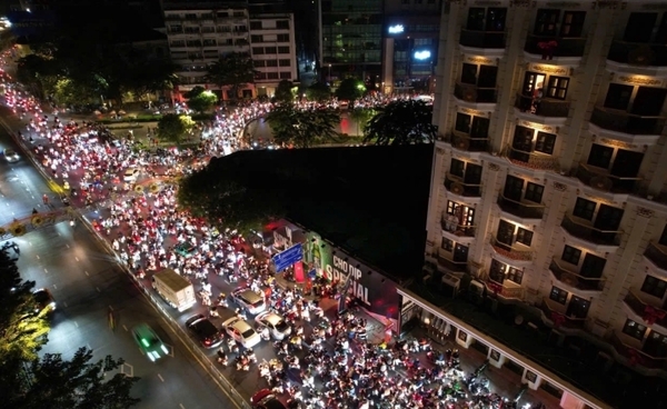 오전 1시 30분, 나팔과 깃발을 든 수많은 인파가 하노이 오페라 하우스 앞 거리로 쏟아져 나와 환호하고 축하했다. 이곳은 베트남 국가대표팀이 승리할 때마다 팬들이 모이는 단골 장소이다. 최근 열린 제33회 동남아시아 경기대회처럼 경기가 보통 이른 시간에 열렸던 때와는 달리, 이번에는 경기가 늦게 시작되었음에도 불구하고 거리로 쏟아져 나온 팬들의 열기는 전혀 뒤지지 않았다.
