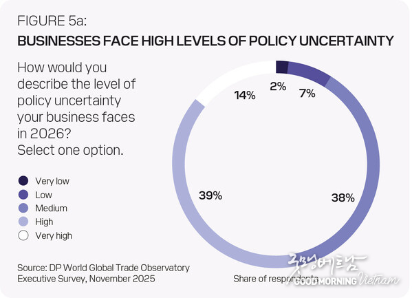 (굿모닝베트남미디어) 글로벌 무역 관측소 연례 전망: 관세, 비용 및 정책 불확실성에도 불구하고 94%가 2026년도 성장세를 2025년도와 유사 내지 상회할 것으로 예상