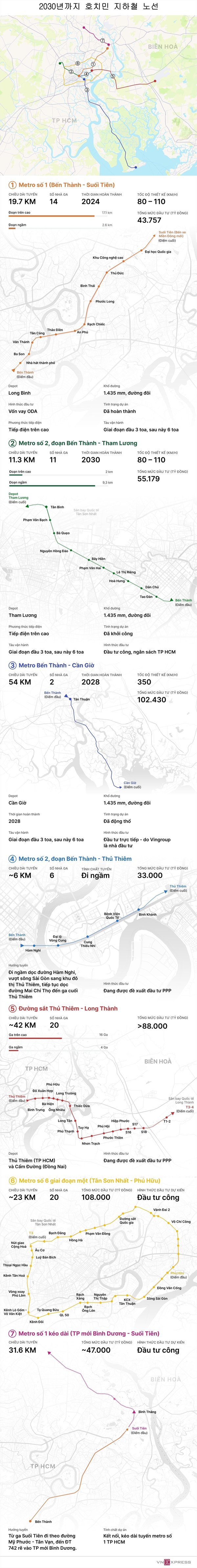 호치민시는 벤탄-쑤오이띠엔 노선 외에도 2030년까지 5개의 지하철 노선을 추가로 건설하여 총 길이 187km를 확보하고, 총 투자액 약 196억 7천만 달러를 투입할 계획이다.