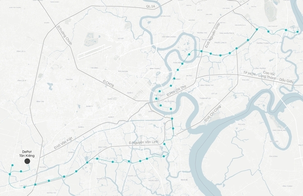 전체 노선에는 34개 역(지하 12개, 고가 22개)과 떤끼엔역과 롱쯔엉역에 각각 차량기지가 들어설 예정이었다. 투티엠 신도시를 통과하는 구간에는 6개 역이 계획되어 있었다.