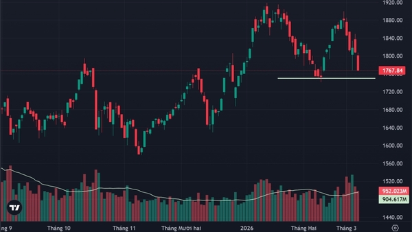 [굿모닝베트남미디어] 베트남 증시가 중동 사태 여파와 글로벌 위험 회피 심리로 급락했다. VN-지수는 전 거래일 대비 40포인트 이상(-2.25%) 하락한 1,768포인트로 마감하며, 2025년 12월 이후 가장 큰 일일 낙폭을 기록했다. 이번 주 5거래일 중 4거래일 하락, 총 112포인트 손실을 냈다.