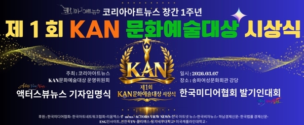 이번 시상식은 문화예술 전문 매체 코리아아트뉴스 창간 1주년을 기념해 마련된 행사로, 3월 7일 서울 송파여성문화회관 강당에서 문화예술계와 언론 관계자들이 참석한 가운데 열렸다. KAN 문화예술대상은 문화예술, 미디어, 콘텐츠, 국제교류 등 다양한 분야에서 문화산업 발전에 기여한 인물들을 발굴하고 격려하기 위해 제정된 상이다.