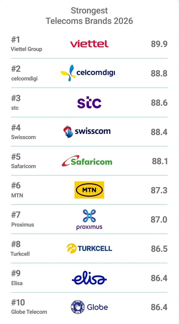 브랜드 파이낸스는 금요일 발표한 보고서에서 비엣텔이 브랜드 강점 지수(BSI) 100점 만점에 89.9점을 받아 최고 등급인 AAA+를 획득했다고 밝혔다. 이는 비엣텔이 2년 연속 2위를 차지한 데 이어 브랜드 강점 측면에서 세계 통신 업계 1위로 올라섰음을 보여준다.