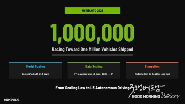 산호세, 캘리포니아 2026년 3월 18일 -- 딥루트닷에이아이(DeepRoute.ai)가 엔비디아(NVIDIA) GTC 2026에서 자율주행 개발의 근본적인 혁신을 대표하는 400억 파라미터 규모의 비전-언어-액션(VLA) 파운데이션 모델 아키텍처를 종합적으로 소개했다. 이 모델은 인식, 추론 및 행동을 통합한 통합 아키텍처를 도입해, 시스템이 단순히 주행하는 것을 넘어 자체 의사결정을 실시간으로 이해하고 평가할 수 있도록 한다.