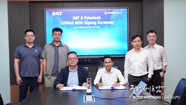 (굿모닝베트남미디어) 호찌민시, 베트남 2026년 3월 19일 -- 글로벌 에너지 저장 시스템 제공업체 파이런텍(Pylontech, 688063.SH)이 베트남의 산업 자동화 및 지속 가능한 에너지 솔루션 선도 업체 DAT 그룹(DAT Group Joint Stock Company)와 양해각서(MoU)를 체결했다. 이번 협약은 150MWh 에너지 저장 구축을 골자로 하며, 파이런텍의 동남아시아 지속적 확장에서 중요한 단계를 의미한다.