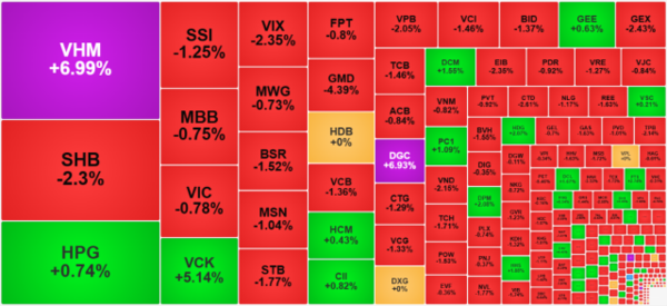 [굿모닝베트남 | 증시] 오늘 호치민 증권거래소(HoSE)에서는 매도세가 강하게 나타났지만, 빈홈(Vinhomes, 종목코드 VHM)이 시장을 지탱하는 버팀목 역할을 했다. 전체 상장 종목의 3분의 2가 하락했음에도 불구하고 빈홈 주가가 상한가를 기록하며 VN-지수의 급락을 막아냈다.