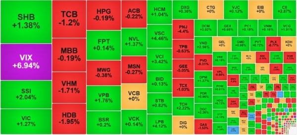 증권주가 시장 상승을 견인했다. VIX는 상한가를 기록했고, SSI, VCI, VND, HCM 등 주요 종목들도 상승했다.