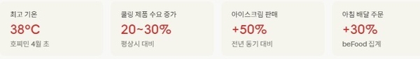 beFood는 2026년 무더운 계절 첫 주 만에 트래픽과 주문량 모두 가파르게 증가했다고 전했다. 특히 차·커피·주스·밀크티 등 음료 카테고리가 전 지표에서 가장 빠른 성장세를 기록했다. 패스트푸드 부문도 뚜렷한 증가세를 보였으며, 오전 주문량만 30% 상승했다.