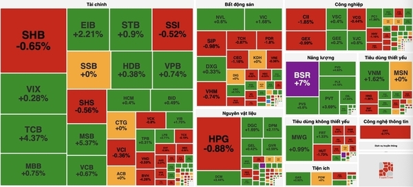 - 부동산: 혼조. VIC(+1.68%)는 상승했으나 VHM(-0.74%), PDR(-1.8%), TCH(-0.87%) 등은 조정