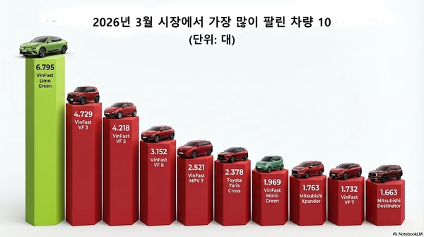 【굿모닝미디어 | 경제·자동차】2026년 3월 베트남 자동차 시장에서 전기차가 중심으로 떠오르며 산업 구조에 큰 변화가 나타났다. 특히 베트남 토종 브랜드 빈패스트(VinFast)가 판매 상위권을 사실상 독점하며 시장 판도를 뒤흔들었다.