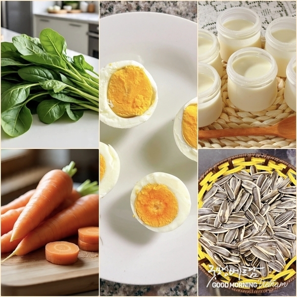 【굿모닝베트남 | 건강】 눈 건강을 유지하려면 특정 영양소를 매일 꾸준히 섭취하는 것이 중요하다. 특히 루테인, 제아잔틴, 비타민 A, 비타민 E, 아연 등이 망막 보호, 백내장·황반변성 위험 감소, 각막 건강에 도움을 준다. 아래 5가지 음식을 매일 식단에 포함하면 눈 피로 완화와 장기적인 시력 관리에 큰 도움이 된다.