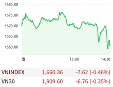 베트남 증시가 24일(현지시간) 빈그룹(Vingroup) 계열주들의 강세로 VN지수가 13포인트 상승하며 1,668포인트로 마감했다. 주말 전 분석가들은 시장이 중립 상태를 유지하며 좁은 가격대 횡보를 지속할 것으로 봤으나, 빈그룹주의 선도 매수세가 1,670포인트 저항선을 돌파하는 계기가 됐다. VN30 지수는 더 강한 상승세를 보이며 1,900포인트를 넘어섰다. 호치민증권거래소(호세)에서 VN지수는 장중 내내 상승세를 유지했다. 빈그룹 그룹의 시장 주도 역할이 두드러졌으며, VN디렉트증권 통계에 따르면 VIC, VHM, VRE, VPL이 지수 상승 기여 상위 5위 중 4자리를 차지했다. 이들 그룹의 기여도는 14포인트 이상으로, 빈그룹주를 제외하면 VN지수는 하락 마감했을 수준이다. VRE가 가장 뜨거운 반응을 보였다. 34,450동 상한가(전일 대비 +7%)를 기록하며 8,950억 동 규모의 호가 매칭을 이끌었다. 모회사 VIC는 4.3% 상승해 24만 동 신고가를 경신했다. VHM과 VPL도 각각 2~3%대 상승으로 VN지수를 지탱했다. 그러나 빈그룹주의 대형 기여에도 불구하고 시장은 '녹색 외피, 붉은 심장' 상태였다. 지수 상승에도 불구하고 190