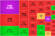 [굿모닝베트남 | 증시] 오늘 호치민 증권거래소(HoSE)에서는 매도세가 강하게 나타났지만, 빈홈(Vinhomes, 종목코드 VHM)이 시장을 지탱하는 버팀목 역할을 했다. 전체 상장 종목의 3분의 2가 하락했음에도 불구하고 빈홈 주가가 상한가를 기록하며 VN-지수의 급락을 막아냈다. 장 초반 소폭 상승하던 VN-지수는 곧바로 1,700포인트 심리적 지지선을 뚫고 급락했다. 오전에는 1,690포인트 부근에서 등락을 반복하다가 오후 들어 1,680포인트 근처까지 떨어졌으나 빠르게 회복했다. 결국 VN-지수는 전일 대비 8포인트 이상 하락한 1,695포인트 부근에서 장을 마감했다. 오늘 장세는 매도 우위였다. 호치민 증권거래소 상장 종목의 거의 4분의 3이 한때 하락세를 보였고, 장 마감 기준으로 242개 종목이 떨어져 상승 종목의 약 3배에 달했다. 업종별로는 은행, 산업, 석유·가스, 소매 관련주가 지수 하락을 주도했다. 특히 은행주 중 VCB, VPB, BID, CTG, TCB, STB 등 6개 종목이 하락 폭이 큰 상위 10개 종목에 이름을 올리며 VN-지수에 큰 부담을 줬다. 빈그룹(Vingroup)의 VIC 주가도 0.8% 하락했는데, 시가총액이 커서